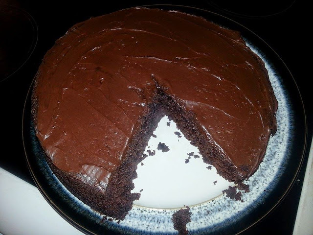 Tonight we had a few reasons to celebrate, mainly all of us under one roof and in good health. It has been nice to avoid doctors and hospitals and medication for a little while now so my amazing hubby surprised me with a bottle of pink champagne. It was delicious, so delicious that we forgot to take photos. So in return, I baked a "devil's cake". It's basically chocolate cake with chocolate icing.